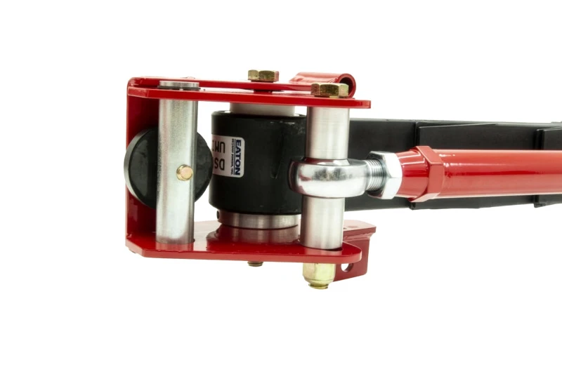 - Heavy-duty fabricated mount replaces factory leaf spring plate