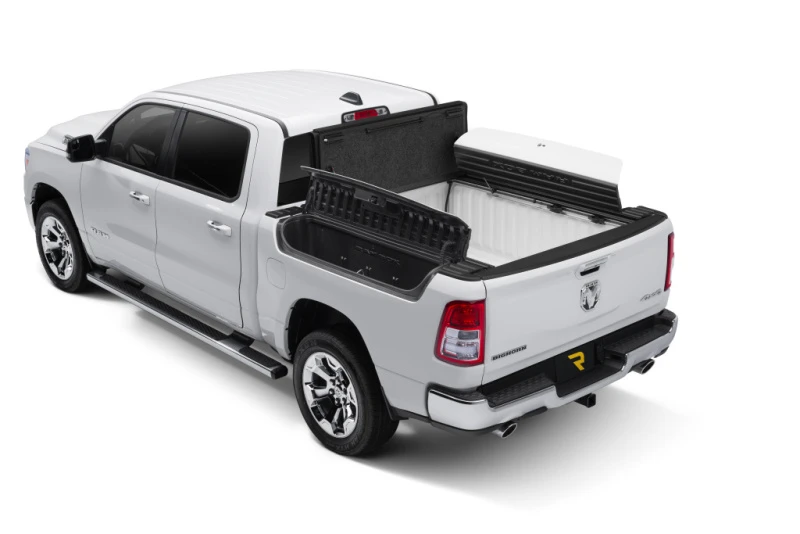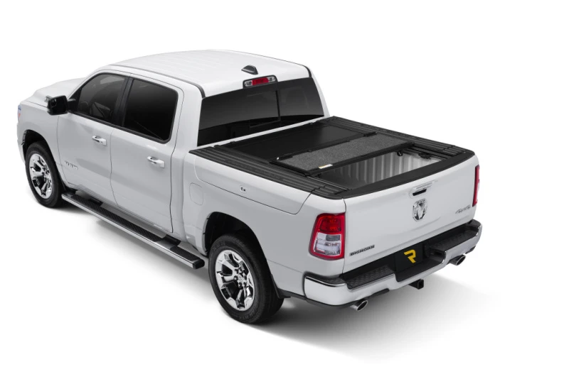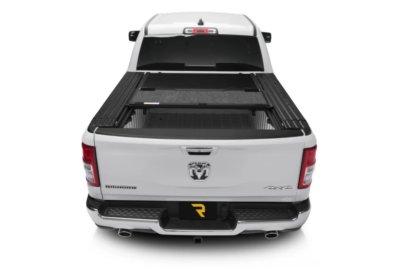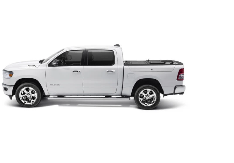 The UnderCover Ultra Flex is a premium hard folding truck bed cover designed specifically for the new body style Ram 1500 models from 2019 to 2025 with a 5.7-foot bed and RamBox. Featuring a stylish matte black textured finish, this cover offers outstanding durability and functionality for truck owners seeking both protection and versatility.