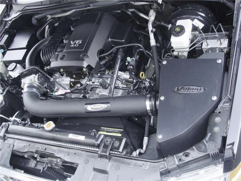 Take your Nissan Frontier to the next level with Volant's Pro5 Closed Box Air Intake System. Our system utilizes a high-velocity venturi filter adapter, providing a smooth transition through the MAF sensor into the intake tube for improved airflow.