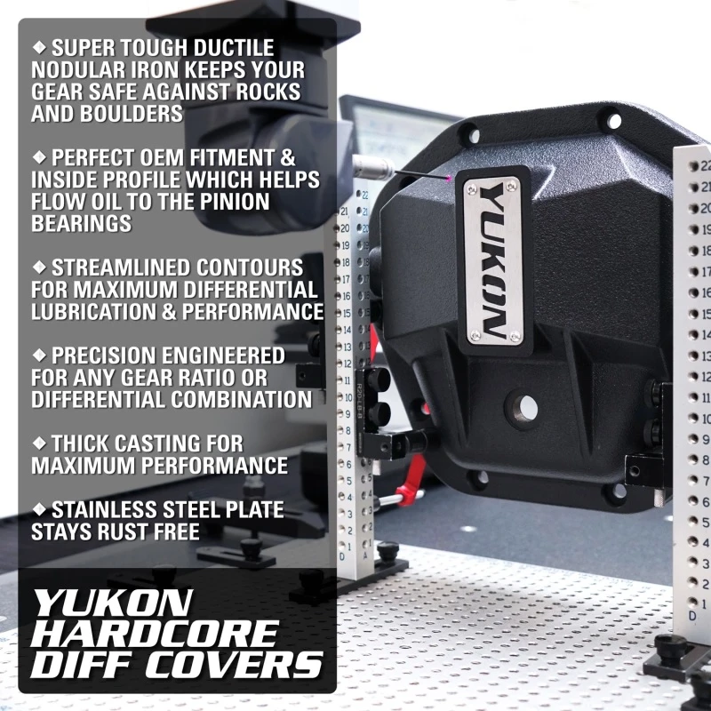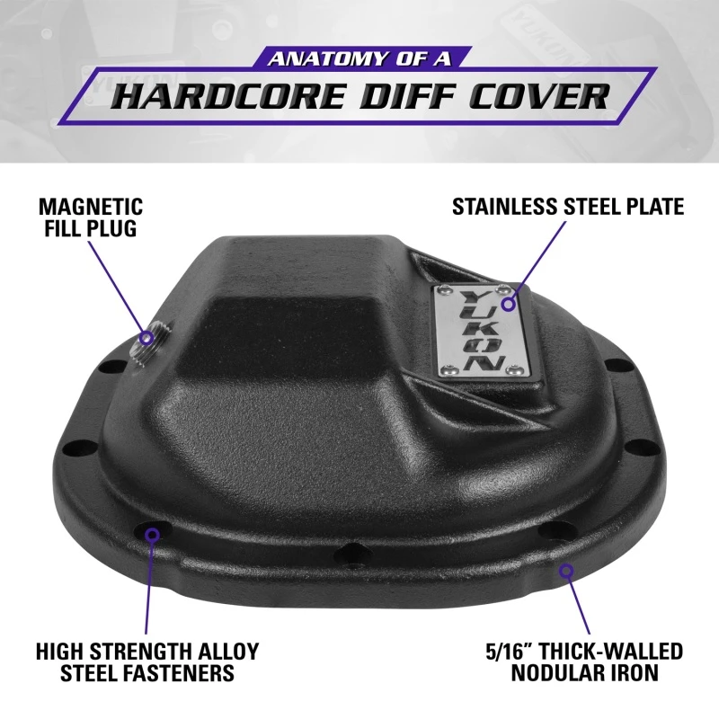 Engineered for extreme off-road and high-torque applications, the Yukon Gear Hardcore Diff Cover delivers superior protection for your differential. Constructed from thick-walled, high-strength nodular iron, this cover safeguards lockers, gears, and axles from the most punishing impacts encountered on the trail. Its robust design increases structural rigidity, minimizing deflection under heavy loads and reducing stress on vital internal components.