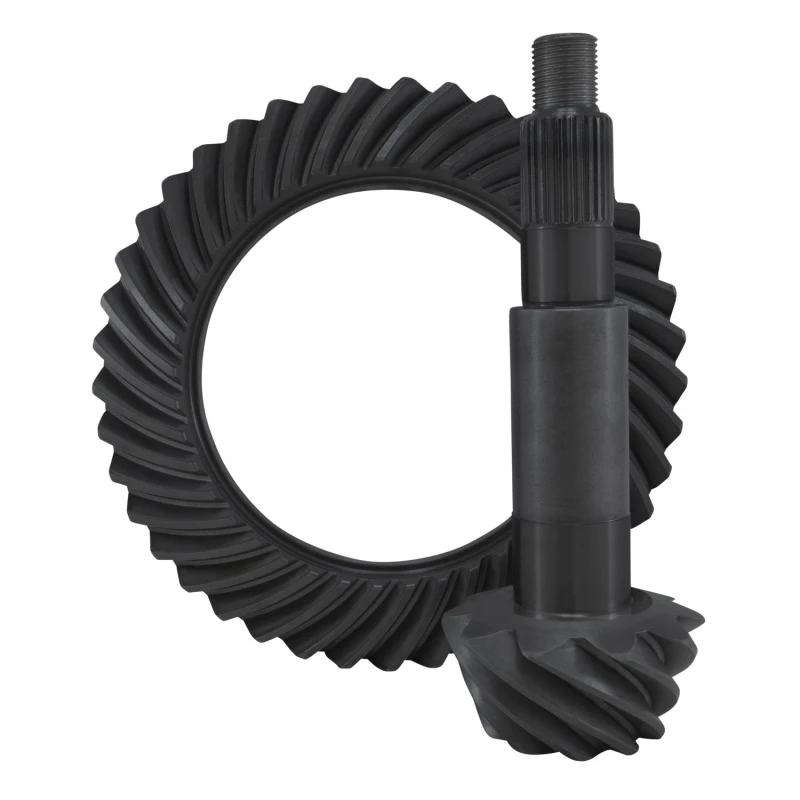 Yukon Gear & Axle's high-performance ring and pinion gear sets are the benchmark of quality in the automotive gear industry. These sets are designed to meet exacting specifications and quality standards, utilizing state-of-the-art design and advanced heat-treating techniques. The gear tooth surface finish is optimized to reduce friction and heat, ensuring long-lasting performance under high torque conditions. Constructed from high-grade steel, these gears are designed to fit OEM specifications, making them ideal for vehicles requiring enhanced traction and power.