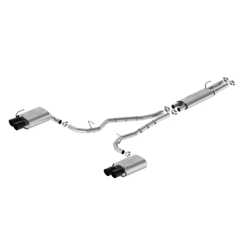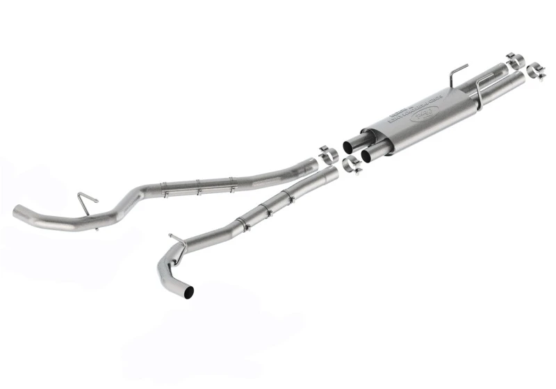 Mit ultra-glatten Mandrel-Bögen, Warp-freien Flanschen und überlegener Handwerkskunst ist dieses Auspuffsystem gebaut, um zu halten. Die Dual-Rear-Exit-Konstruktion mit schwarzen Chrom-Endrohren aus Edelstahl gibt deinem Fahrzeug ein sportliches Aussehen.