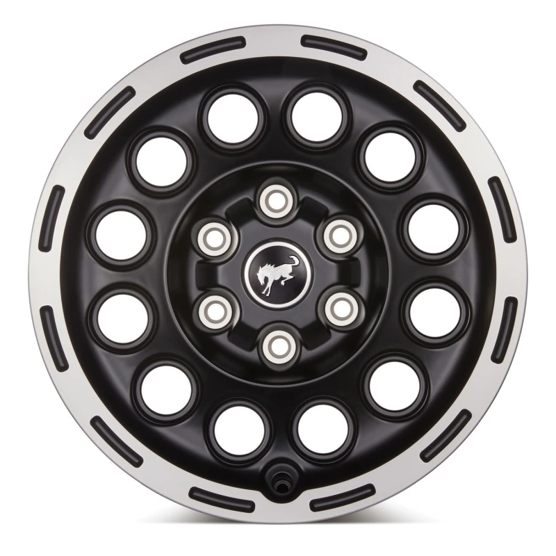 Verbessere den Stil und die Leistung deines Broncos mit diesem Ford Racing 17x8.0 Felgen-Kit. Die bearbeitete Oberfläche und die matte schwarze Farbe machen diese Felgen zu einem echten Hingucker auf der Straße oder im Gelände.