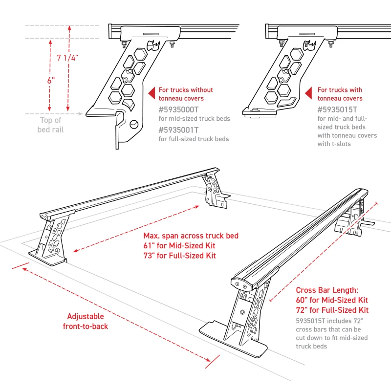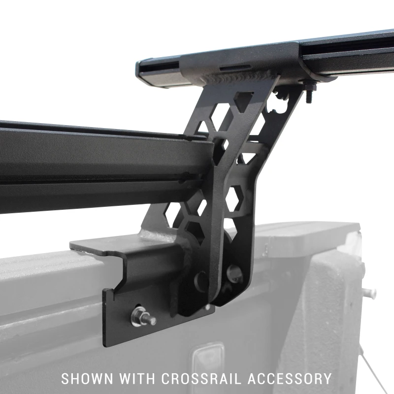 Die Eckständer heben und unterstützen die 4-CORE Querträger etwa sechs Zoll über dem Original-Laderaum, wodurch der Zugriff auf den Laderaum unbehindert bleibt. Montierte Zelte und Frachtboxen sitzen unterhalb des Daches der Kabine, was den Windwiderstand reduziert.