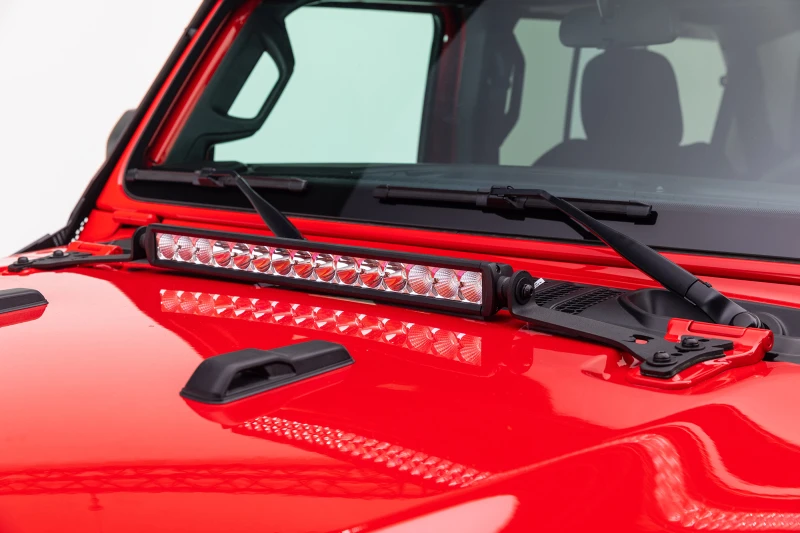 Erwecke deinen Jeep auf das nächste Level mit dem Go Rhino Hood Hinge Licht Halter, der speziell für 20"-Einzelreihen-LED-Balken entwickelt wurde. Dieser robuste Halter überspannt die Haube und bietet eine nahtlose Installation, die die Funktion der Haube nicht beeinträchtigt.