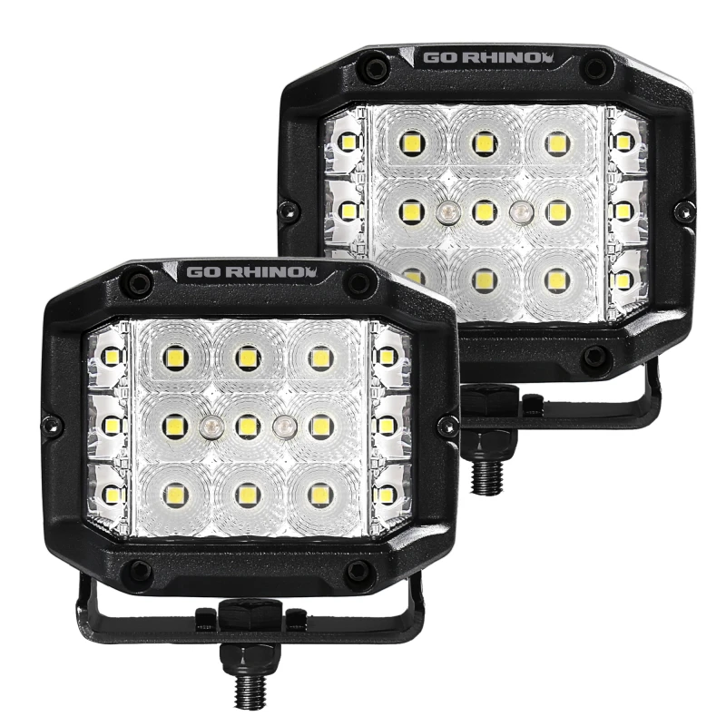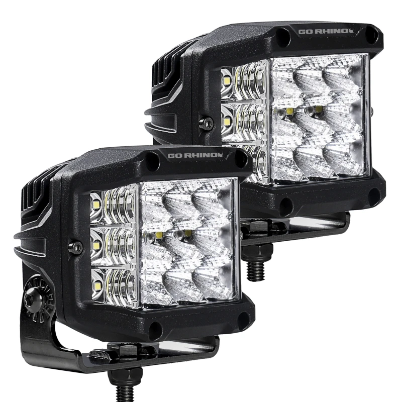 Go Rhino Xplor Bright Serie Sideline Cube LED Flutlicht Kit (Oberflächenmontage) 4x3 - Schwarz (Paar)