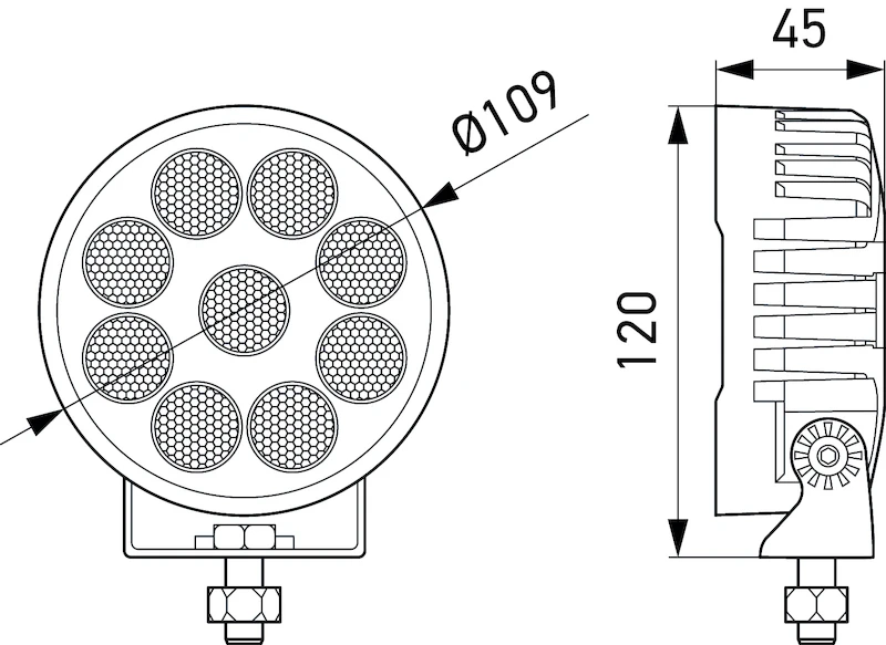 Mit ihrem thermischen Sensor passt sich diese Arbeitsleuchte an die Umgebungstemperatur an, verhindert Überhitzung und erhöht die Lichtausgabe bei niedrigen Temperaturen. Plus, ihre hohe Widerstandsfähigkeit und schweren Pfostenhalter garantieren eine lange Lebensdauer.