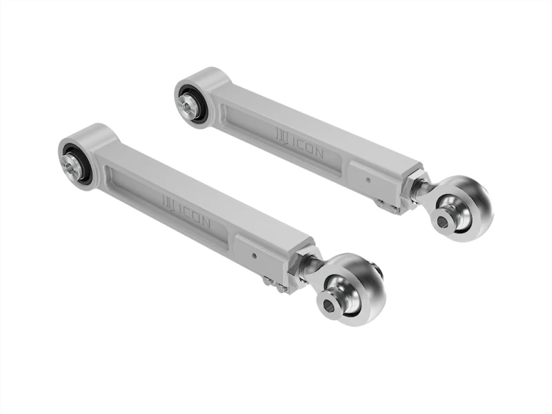 Mit PTFE-beschichteten FK-Gelenken bieten diese Lenker eine erhöhte Federungsausdehnung, eine geringere Abweichung und eine Einstellbarkeit der Lenkerlänge im Fahrzeug mithilfe des ICON-Doppel-Verstellsystems. Darüber hinaus sind mehrstufige Buchsen für geräuschlose Funktion und maximale Winkelstellung ohne Notwendigkeit für regelmäßige Schmierung und/oder andere Wartung installiert.