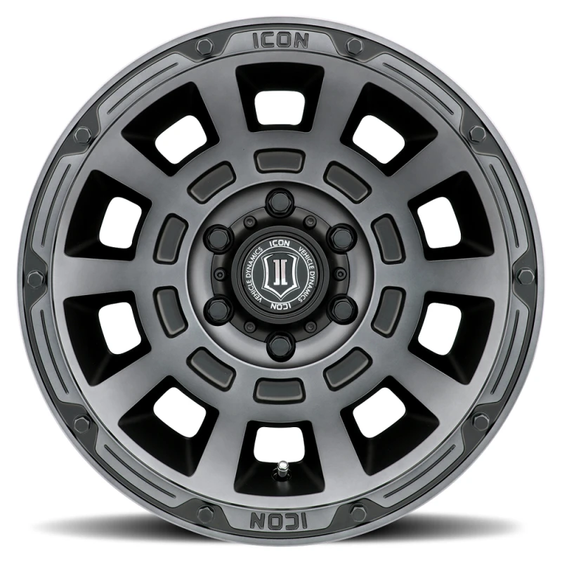 ICON Thrust 17x8,5 6x135 6mm Offset 5 Zoll BS Smoked Satin Black Tint Rad