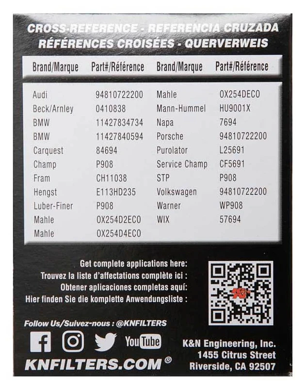 K&N Leistungs-Ölfilter für 06-11 BMW M5/M6 / 08-15 Porsche Cayenne 4.8L / 10-15 911 3.4L/3.8L