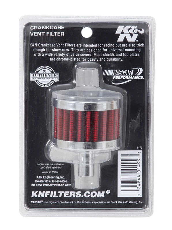 K&N Stahlbasis Chrom-Top Kurbelgehäuse-Ventil-Filter 1/2 Zoll Ventil / 2 Zoll OD / 1-1/2 Zoll Höhe