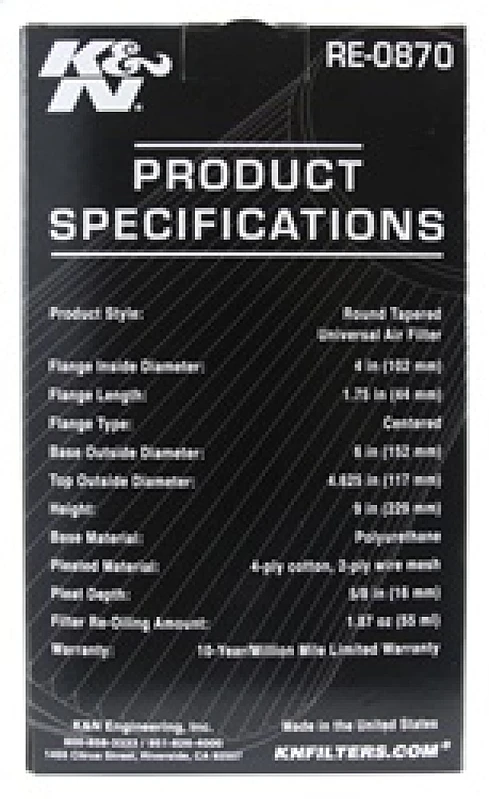 K&N Universal-Gummi-Filter 4 Zoll FLG / 6 Zoll OD-B / 4-5/8 Zoll OD-T / 9 Zoll H