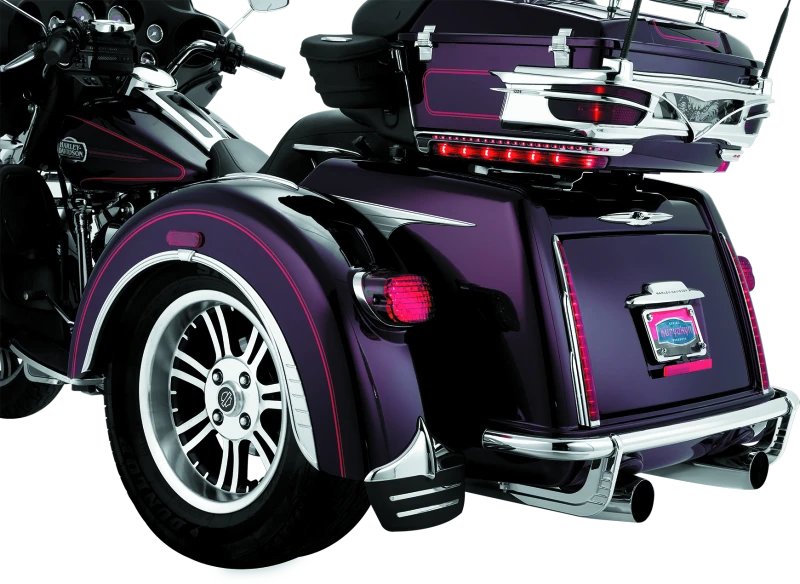 Verleihe deinem Harley-Davidson Trike mit diesen hochwertigen Chrom-Akzenten am hinteren Stoßfänger einen edlen Look. Sie verdecken die Schweißstellen an den Halterungen und setzen glänzende Akzente, die sofort ins Auge fallen.