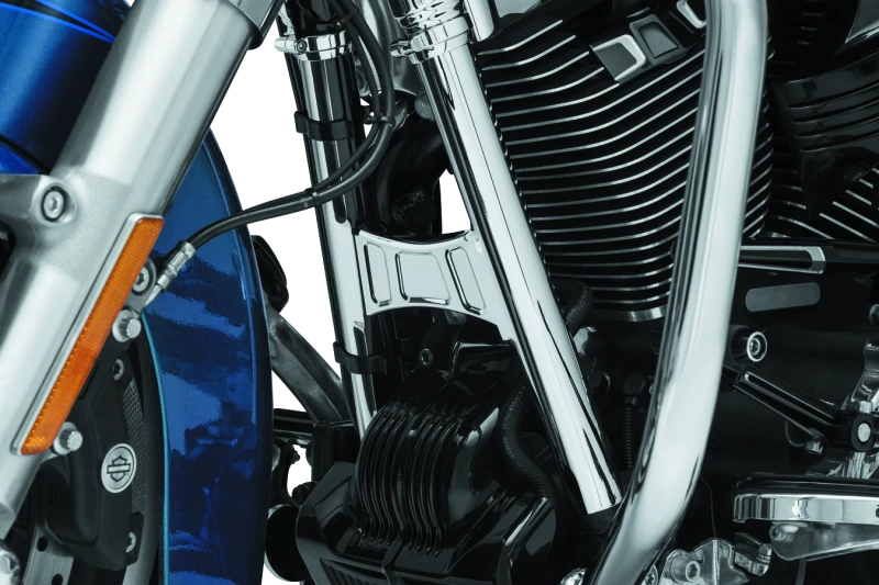 Das Kuryakyn Deluxe Neck Cover Set verleiht Deinem Harley Touring Modell einen edlen Look und verbirgt Schweißnähte sowie Kabel in einem einfachen Schritt. Es umfasst obere Abdeckungen und Snap-on-Down-Tube-Cover, die den Rahmenhals und die unteren Rohre stilvoll schützen.