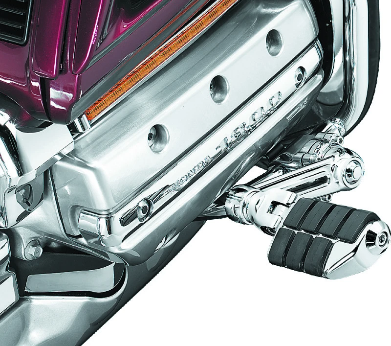 Ergonomisch gestaltet für maximalen Fahrkomfort, bieten diese Fußrasten eine große Verstellbarkeit für große, kleine oder durchschnittliche Fahrer. Die Halterung aus hochglanzpoliertem Edelstahl sorgt für extreme Stabilität, tolles Aussehen und einfache Montage. Der 15 cm lange, verchromte Schwenkarm ist mit einem genialen Verriegelungsmechanismus ausgestattet und um 6 Grad geneigt, was die Fußrasten optimal für besten Komfort ausrichtet.