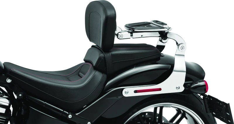 Mit dem Kuryakyn Fixed Mounts Multi-Purpose Backrest genießt Du auf Deiner Harley-Davidson Softail ab Baujahr 2018 maximalen Komfort und Flexibilität. Das innovative System vereint Fahrer- und Beifahrer-Rückenlehne mit einem praktischen Gepäckträger – alles in einem Produkt. Dank des robusten Aluminiumrahmens, des gepolsterten Rückenpolsters und des faltbaren Stahl-Gepäckträgers mit Gummi-Einlagen bist Du optimal ausgestattet.