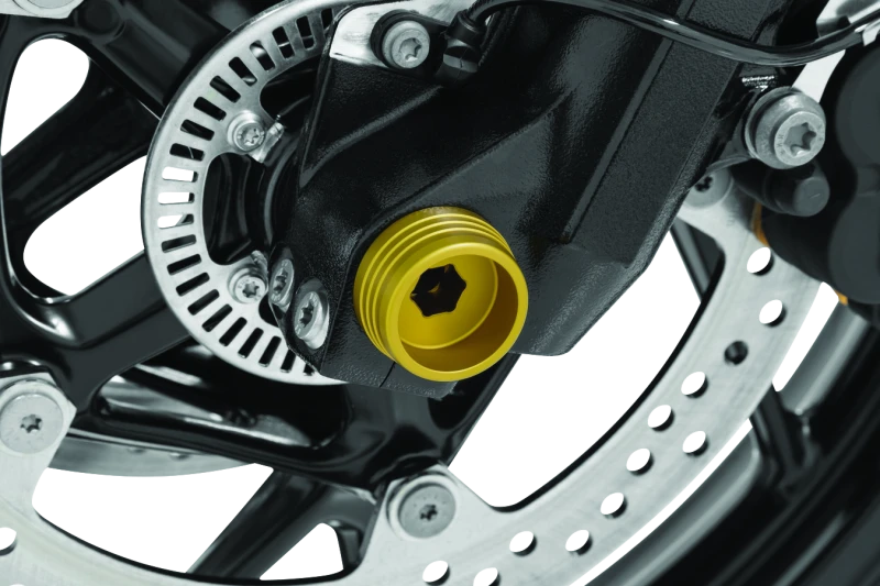 Der Kuryakyn Lodestar Front Axle Slider schützt deine teure Vorderradaufhängung und Bremskomponenten, indem er bei einem Sturz oder Umkippen den ersten Aufprall absorbiert. Gefertigt aus hochwertigem 6061-T6 Aluminium, bietet dieser Achsenschutz nicht nur Sicherheit, sondern auch eine edle goldene Optik.