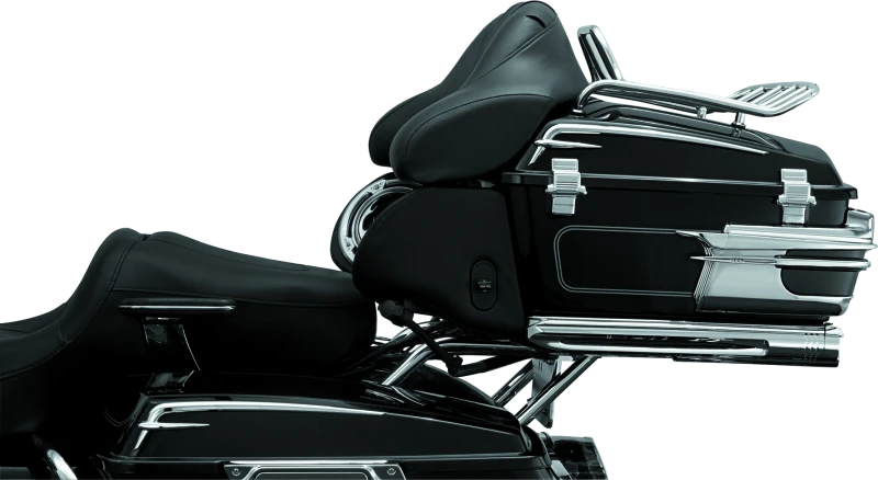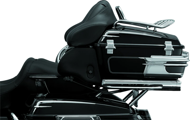 Der Kuryakyn Quick Adjust Relocator ermöglicht eine werkzeuglose Verstellung des Tour Pak um bis zu 4 Zoll. Du kannst den Tour Pak 1 Zoll nach vorne oder bis zu 3 Zoll nach hinten von der Serienposition verschieben. So erhöhst Du den Komfort für Dich und Deinen Beifahrer deutlich.