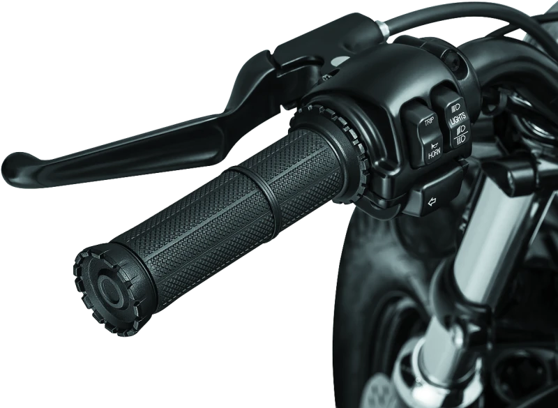 Die Kuryakyn Riot Griffe bieten dir MX-Styling mit einem dünnen Profil und einer weichen, langlebigen geriffelten Gummimischung für optimale Kontrolle und hohen Komfort. Die aggressiv gestalteten Gehäuse und Zieringe aus Aluminium in satinierter schwarzer Ausführung verleihen deinem Bike einen robusten Look aus jedem Blickwinkel.