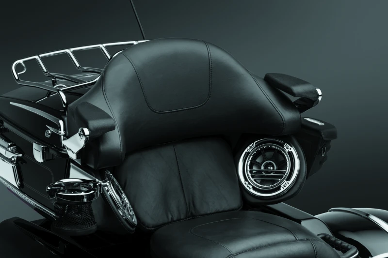 Erlebe ultimativen Komfort und praktische Funktion in einem kompakten, robusten Design! Die Halterungen sind nahezu unsichtbar und werden zwischen dem Tour-Pak-Deckel und dem Polster befestigt. Jeder Arm bietet zwei Montagepositionen und der Drehpunkt verfügt über einen verstellbaren Anschlag zur Feinjustierung der Polsterposition. Der gepolsterte, überzogene Arm lässt sich zurückklappen und bleibt so aus dem Weg.