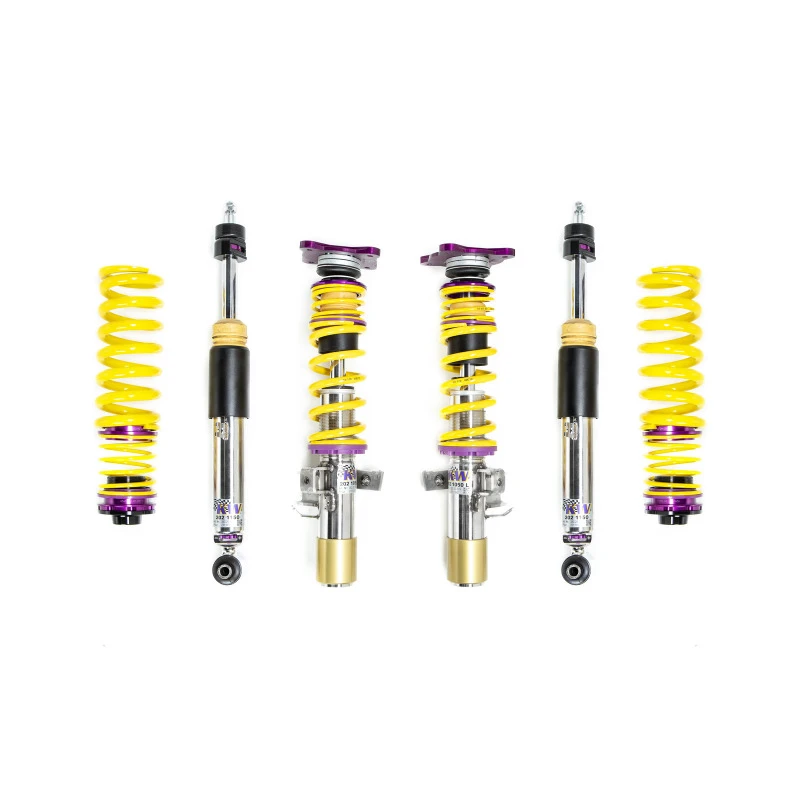 Mit patentierter TVR-A- und TVC-A-Technologie ermöglicht das KW Clubsport-Kit separat einstellbare Rebound- und Kompressionsdämpfung, um eine individuelle Einrichtung für die Modifikationen deines Fahrzeugs zu ermöglichen. Der umfangreiche Einstellbereich macht es einfach, die Lenkverhaltens, Richtungsstabilität, Grip und Handhabungseigenschaften direkt zu beeinflussen.