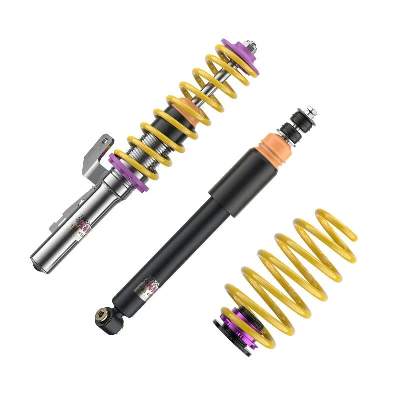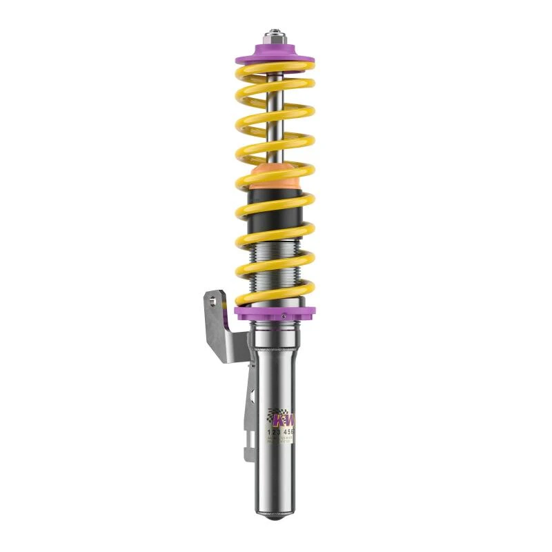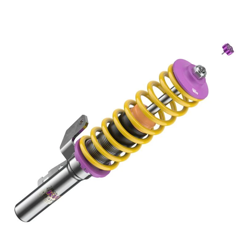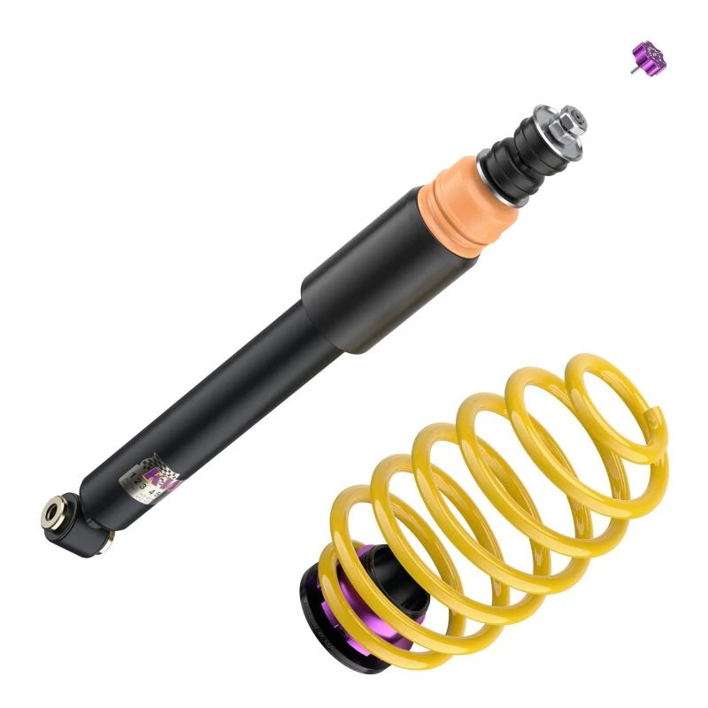 Mit dem KW Coilover-Kit V2 erlebst du ein dynamischeres und direkteres Fahrerlebnis. Die zweistufige, patentierte TVR-A-Technologie (Twin Valve Rebound - Adjustable) ermöglicht einen kleinen Ölfluss durch einen einstellbaren, konisch geformten, Low-Speed-Bypass bei niedrigen Dämpfergeschwindigkeiten, während bei hohen Dämpfergeschwindigkeiten das Haupt-Rebound- Ventil öffnet und einen größeren Ölfluss ermöglicht.