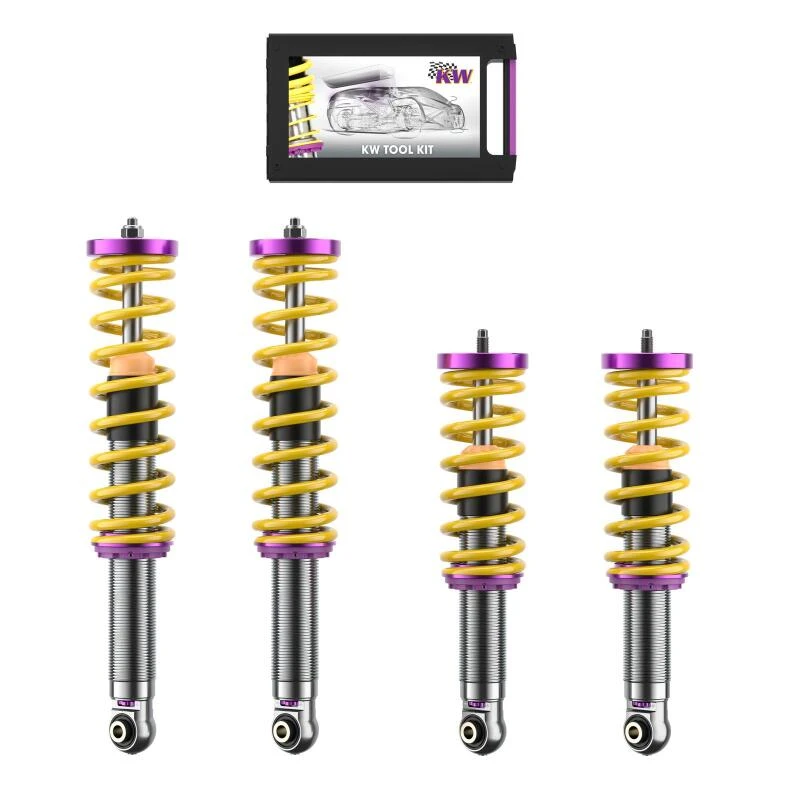 Erlebe unübertroffene Straßenleistung mit dem KW Stoßdämpfer-Kit V3, gezüchtet aus Motorsport-Erbe. Dieses Coilover-Federungskit verfügt über patentierte TVR-A- und TVC-A-Technologie, die separate Anpassung von Rebound- und Kompressionsdämpfung ermöglicht.