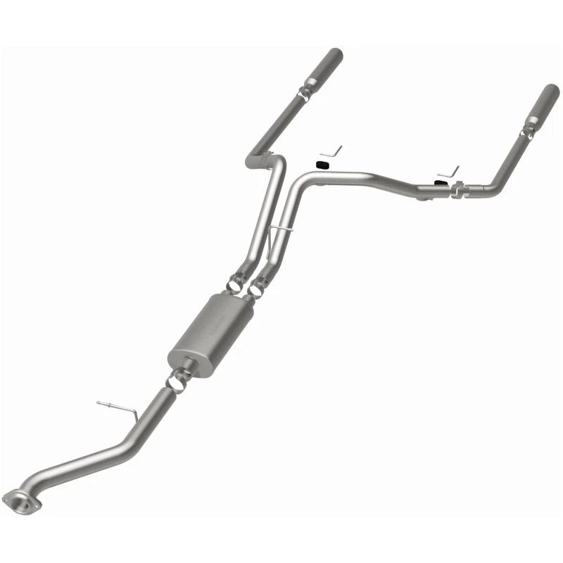 Entfessle das volle Potenzial deines Trucks mit dem MagnaFlow Street Series 15753 Kat-Back-Abgassystem. Dieses System ist darauf ausgelegt, einen kraftvollen Motorklang und dyno-geprüfte Leistung zu liefern. Mit seiner schnellen, mandrel-gebogenen 3-Zoll-Hauptleitung und 1 Gerade-Durch-Muffler, die in einem Dual-Split-Rear-Ausgang mit 3,5-Zoll-Polierten-Clamp-On-Single-Wall-Winkel-Schnitten-Rolled-Edge-Spitzen enden, hat dieses Abgassystem die Leistung, um seinem sportlichen Klang und Aussehen gerecht zu werden.