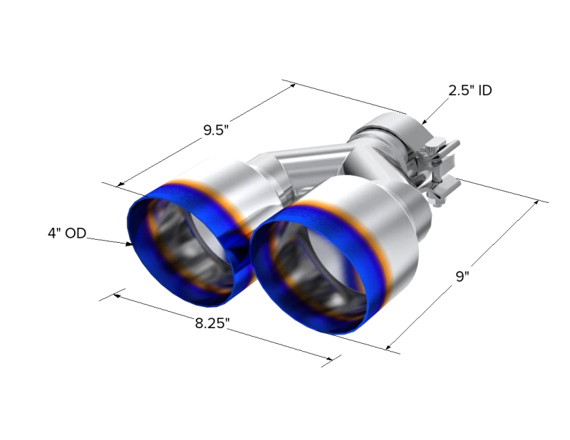 MBRP Burnt End Tip 2,5 ID Dual 4 OD Aus 9,55 Länge Einzelwand 304 Edelstahl Passseite