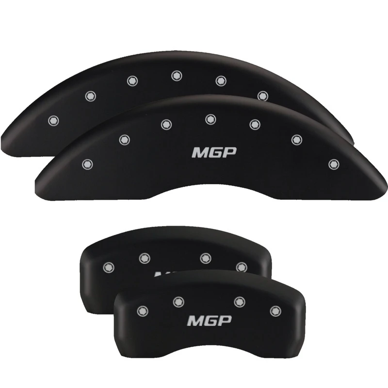 MGP 4 Bremse Caliper Abdeckungen Graviert Vorne & Hinten MGP Matt Schwarz Finish Silber