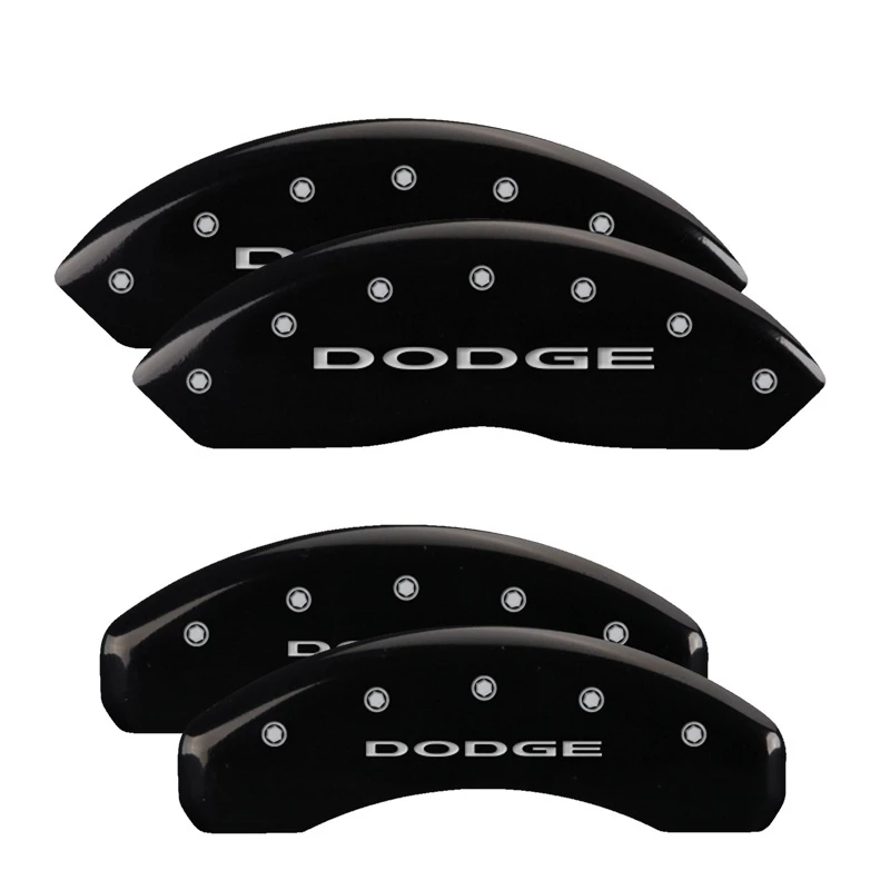 MGP 4 Bremssattel-Abdeckungen Graviert Vorne & Hinten Ohne Streifen/Dodge Schwarz Finish Silber
