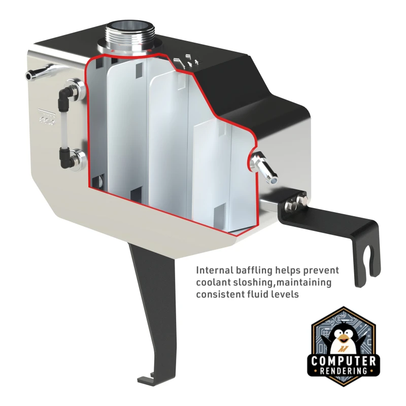 Unser Ausdehnungsbehälter verfügt auch über eine leicht ablesbare Sichtprüfröhre, um den Kühlmittelstand schnell und einfach zu überprüfen. Plus, mit einer 33%igen Kapazitätserhöhung gegenüber dem Serienbehälter kannst du sicher fahren.