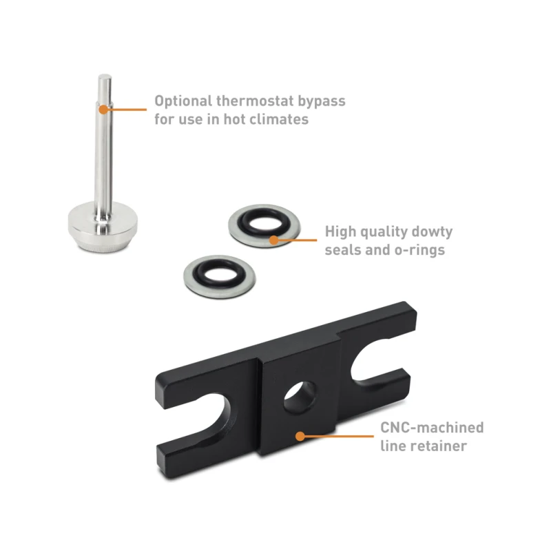 - Austauschbarer Thermostat öffnet 10°F früher als serienmäßig für bessere Kühlung