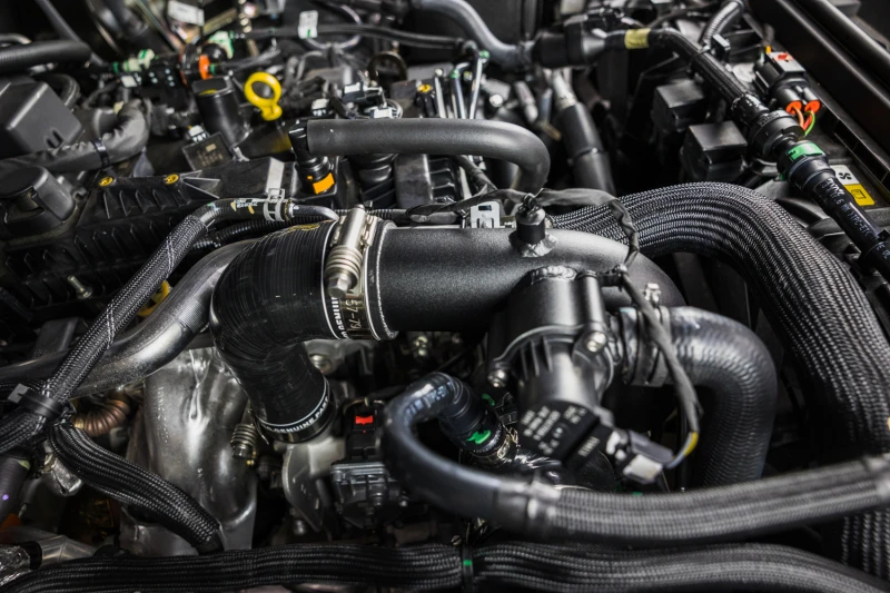 Erwecke dein 2021+ Ford Bronco 2.3L EcoBoost zum Leben mit dem Mishimoto Intercooler-Rohr-Kit. Dieses direkt passende Kit ersetzt die schwachen und unattraktiven Kunststoffrohre durch leistungsfähige, widerstandsfähige Aluminiumrohre und Silikonstiefel mit DuraCore-Technologie.