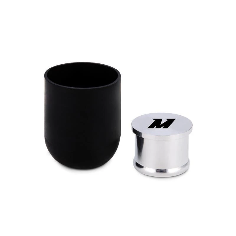 Die Installation ist ein Kinderspiel und dauert nur 10 Minuten. Das Kit enthält einen Aluminium-CNC-Stecker mit dem Mishimoto-Logo, der in den Ansaugstutzen eingeführt wird, sowie eine Gummikappe, die auf das Schalldämpfer installiert wird.