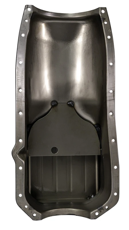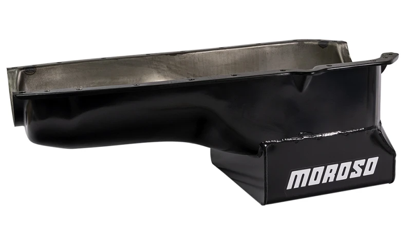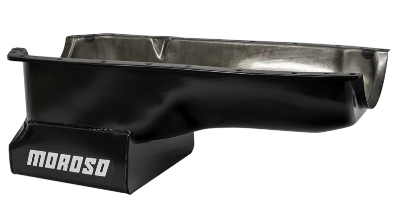 Diese hochwertige Ölwanne von Moroso ist speziell für alle Oldsmobile V-8 Motoren ab Baujahr 1965 mit Hubräumen von 330 bis 455 konzipiert. Die Stahlwanne verfügt über ein tiefes Wet-Sump-Design mit einem Fassungsvermögen von 7 Quart (ca. 6,6 Liter) und einer Tiefe von 8,5 Zoll (ca. 21,6 cm), was eine verbesserte Ölversorgung und Kühlung gewährleistet.