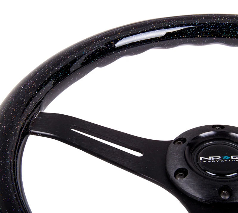 NRG Classic Wood Grain Lenkrad 350mm Schwarz Glitzerndes Griffstück mit Schwarzem 3-Speichen-Mittelteil