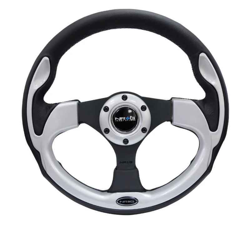 NRG Reinforced Steering Wheel (320mm) Blk w/Silver Trim & 5mm 3-Spoke