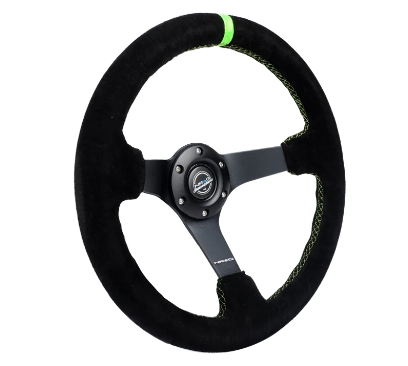 NRG Reinforced Steering Wheel 350mm/3in. Deep Blk Suede/Neon Green Stitch