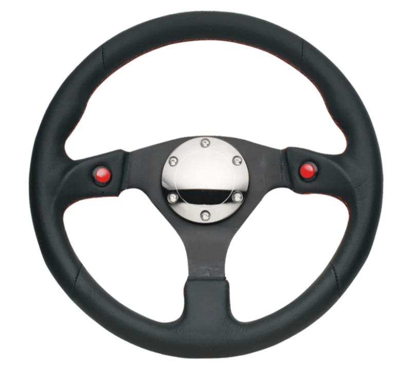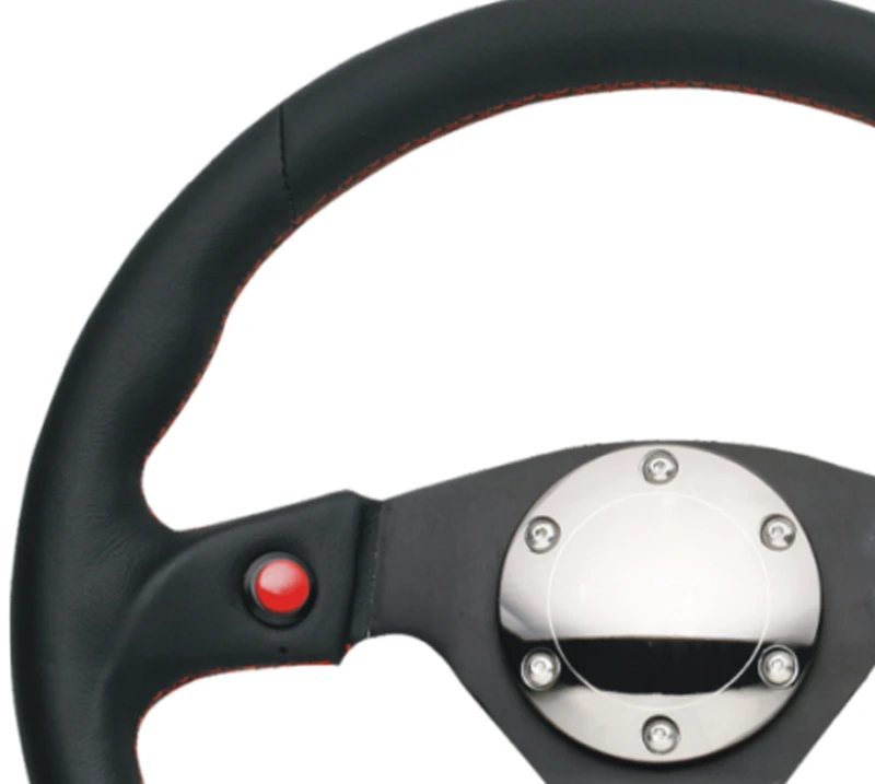 Das NRG Lenkrad bietet dir höchste Stabilität und Komfort für sportliches Fahren. Es ist mit weichem Leder bezogen und verfügt über zwei ergonomisch platzierte Tasten, die du bequem mit den Daumen erreichen kannst. Die verstärkte Konstruktion mit doppelt genieteten Speichen sorgt für extra Festigkeit und Langlebigkeit, ideal für den Einsatz auf der Rennstrecke.