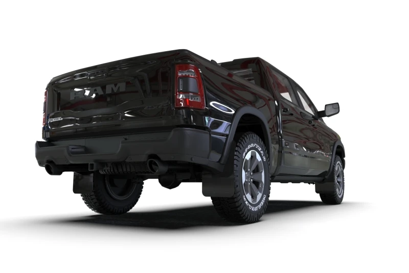 Rally Armor 19-24 Dodge Ram 1500 Rebel Schwarzes UR-Schmutzfänger mit Metallisch-Schwarzem Logo