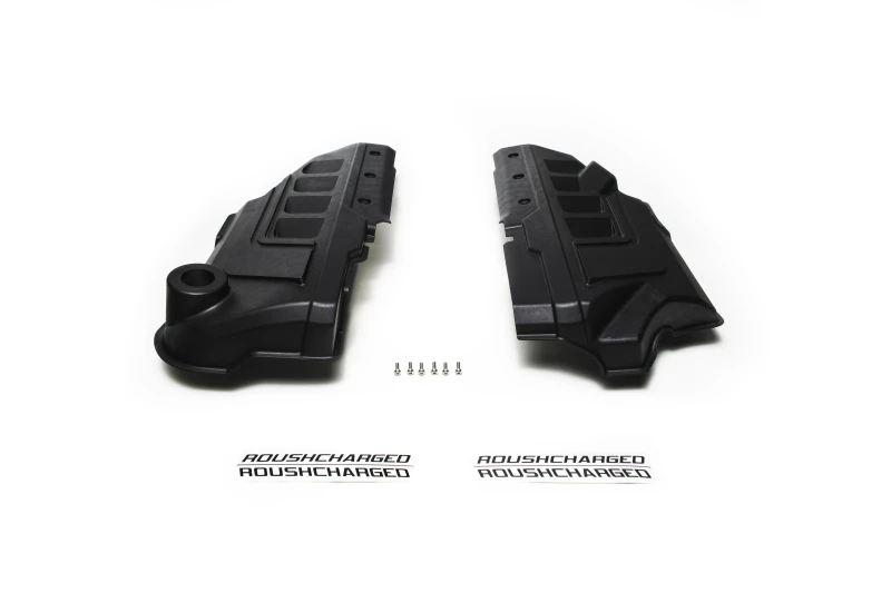 Persönalisiere den Look deines Motorraums mit den zwei beiliegenden Sets an schwarzen und matten grauen "ROUSHCHARGED"-Aufklebern. Kompatibel mit 2018-2022 Ford Mustang GTs, die mit dem Roush 2650 TVS Kompressor ausgestattet sind.