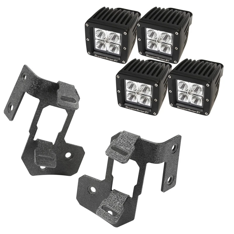 Erlebe deine Offroad-Abenteuer auf einem neuen Level mit dem Rugged Ridge 07-18 Jeep Wrangler JK Texturiertes Schwarz Quadratisches A-Pillar LED Lichtmontage Kit. Dieses Kit enthält ein Paar Lichtmontagen und vier 3-Zoll-Würfel-LED-Lichter, die eine neue Option für verbesserte Sichtbarkeit während der Abendfahrten auf dem Trail bieten.