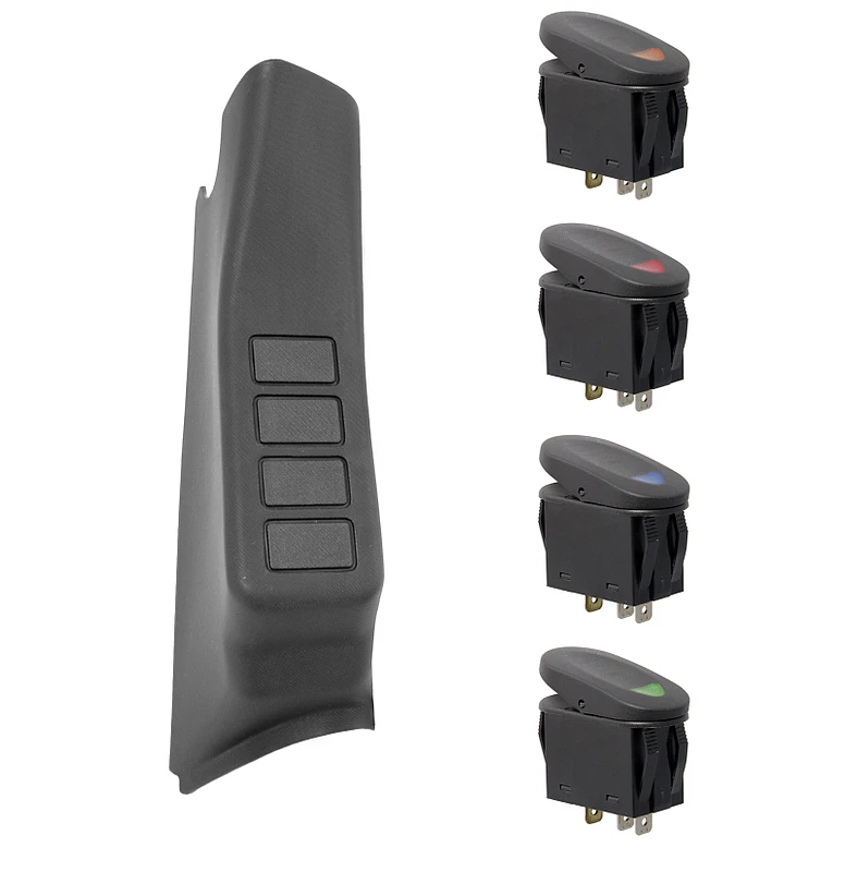 Suchst du nach einem praktischen Ort, um deine Accessoire-Schalter anzubringen, ohne dass du deinen Jeep bearbeiten musst? Dann bist du hier genau richtig! Der Rugged Ridge A-Pillar Schalter-Pod ist speziell für deinen Jeep konzipiert und bietet eine stilvolle und texturierte Oberfläche, die genau wie die werkseitige Plastik-Pfeiler-Abdeckung aussieht.