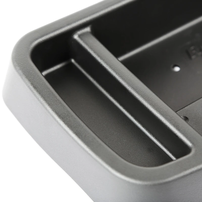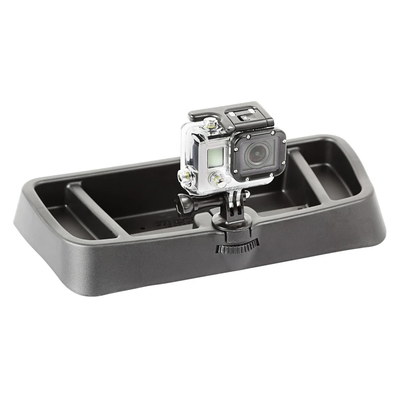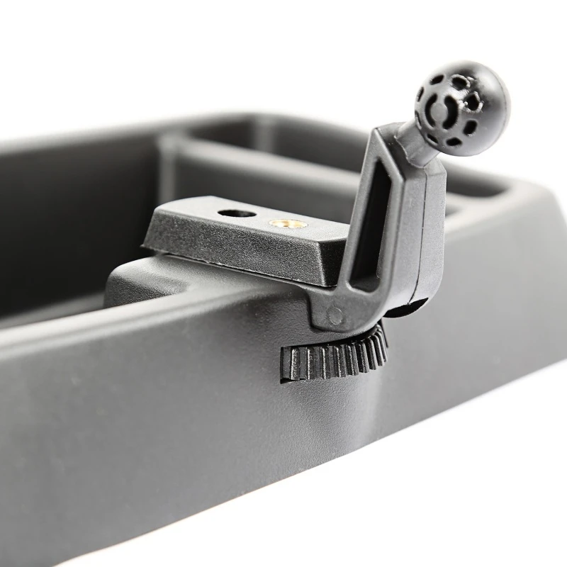 Das System umfasst ein 2-teiliges Tablett für die Aufbewahrung von Münzen, Stiften oder Sonnenbrillen und bietet sowohl Tripod- als auch Kugelhalterungen, um Mobiltelefone, GPS, Kameras und sogar Radar-Detektoren innerhalb der Reichweite von Fahrer und Beifahrer zu halten.