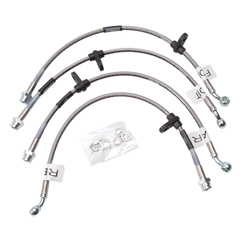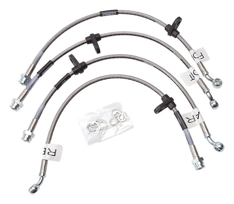 Unser Bremseleitung-Kit verfügt über Edelstahl-geflochtene Schläuche, Zink-überzogene Anschlüsse und erfüllt die DOT-Richtlinien und -Anforderungen. Jedes Kit ist vormontiert für einfache Installation und ist in allen 50 Staaten zugelassen.