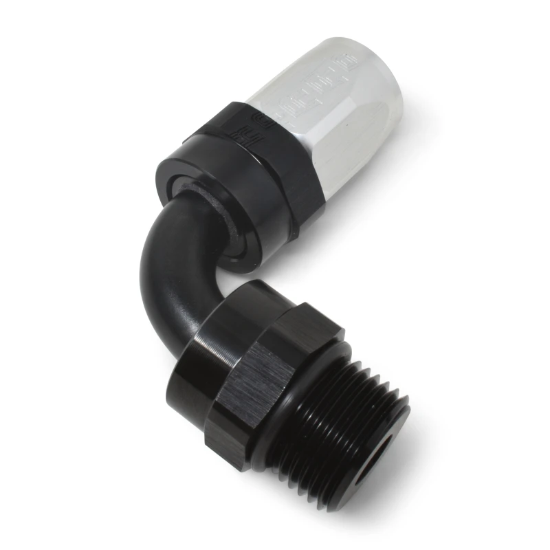 Russell Performance Schlauch-Endstück #8 Schlauch zu #8 Radius-Einlass-Port 90 Grad Schwarz/Klar