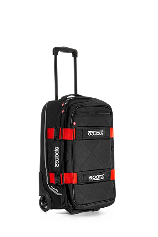 Die Sparco Bag Travel ist ein stylisches Reisegepäckstück, das speziell als Handgepäck für Flüge konzipiert wurde. Sie bietet mehrere interne Taschen mit Schutzpolsterung und einem verstärkten Unterfach. Zwei Gurtschlaufen halten den Inhalt sicher fest. Ein Teleskophandgriff erleichtert das Heben und Rollen.