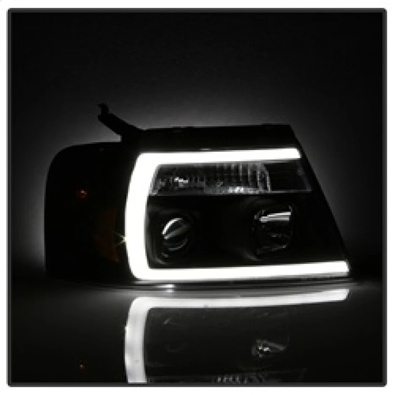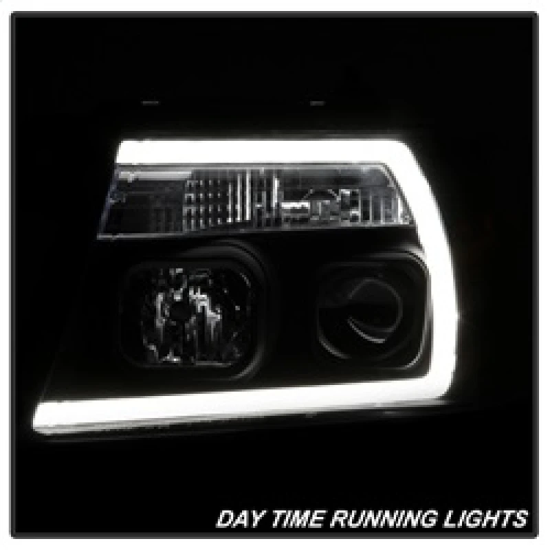 Spyder 04-08 Ford F-150 Projector Headlights - Light Bar DRL - Black PRO-YD-FF15004V2-LB-BK
