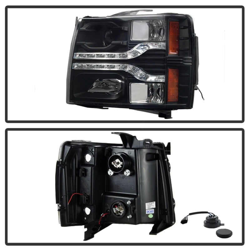 Spyder Chevy Silverado 1500 07-13 V2 Projector Headlights - LED DRL - Black PRO-YD-CS07V2-DRL-BK